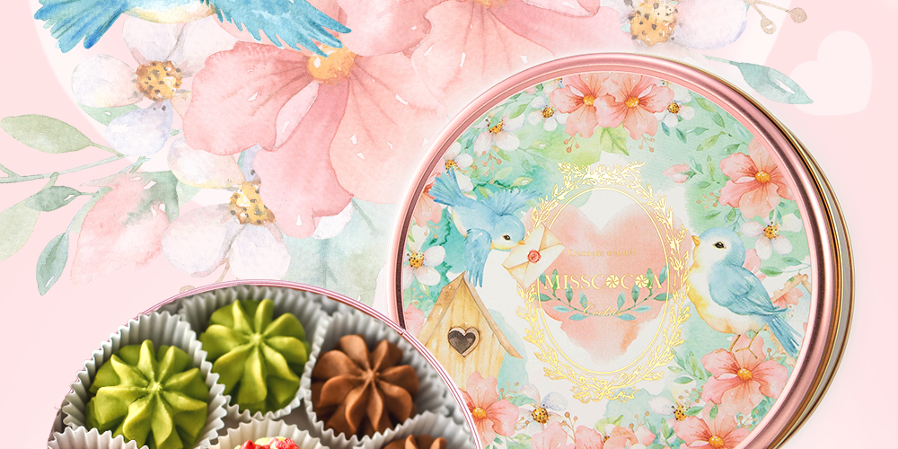 喜餅禮盒【MISSCOCOA】小花曲奇餅乾 「 錦上添花」雙層綜合鐵罐裝 ※婚禮限定_送子鳥