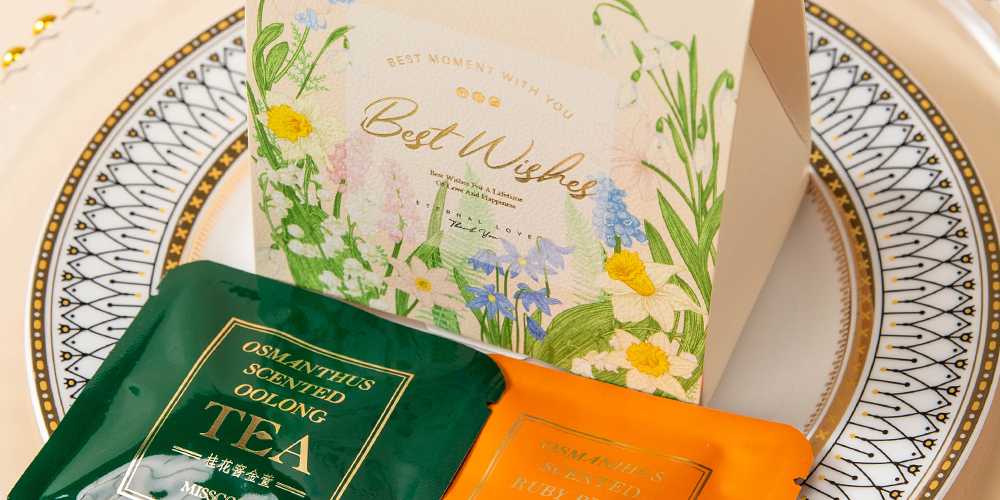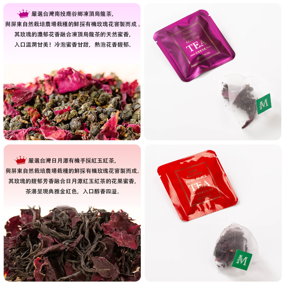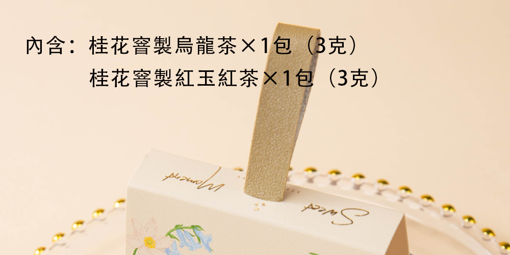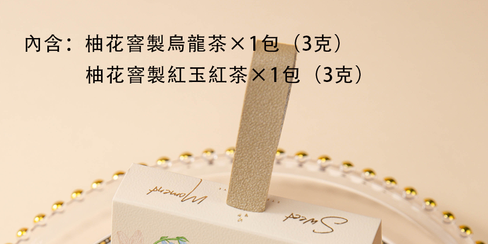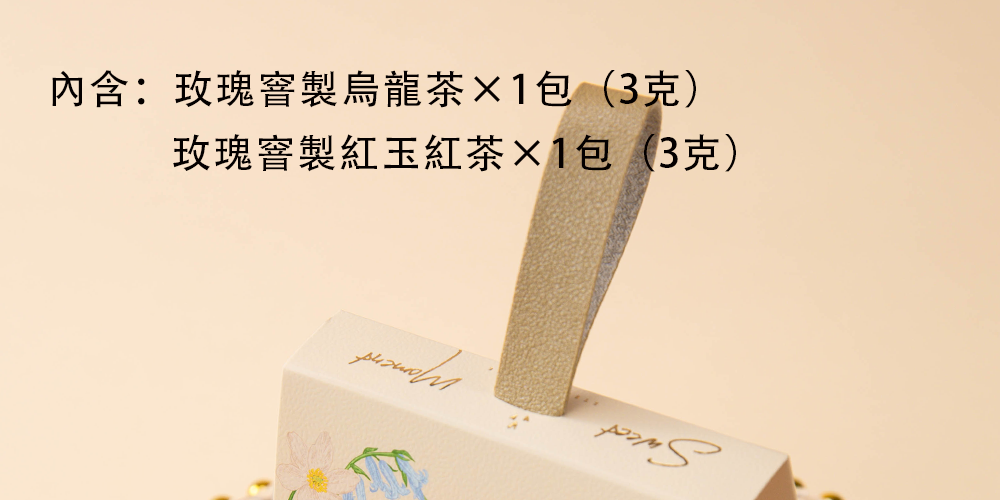 ✦每盒內含兩包窨製花茶:窨製烏龍茶×1包(3克)+窨製紅玉紅茶×1包(3克)