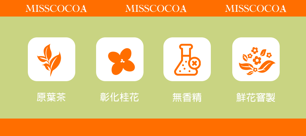 ✦嚴選台灣日月潭有機手採紅玉紅茶,與彰化二水黃金桂花窨製而成。