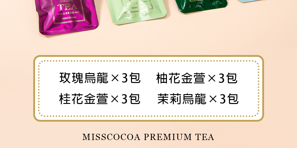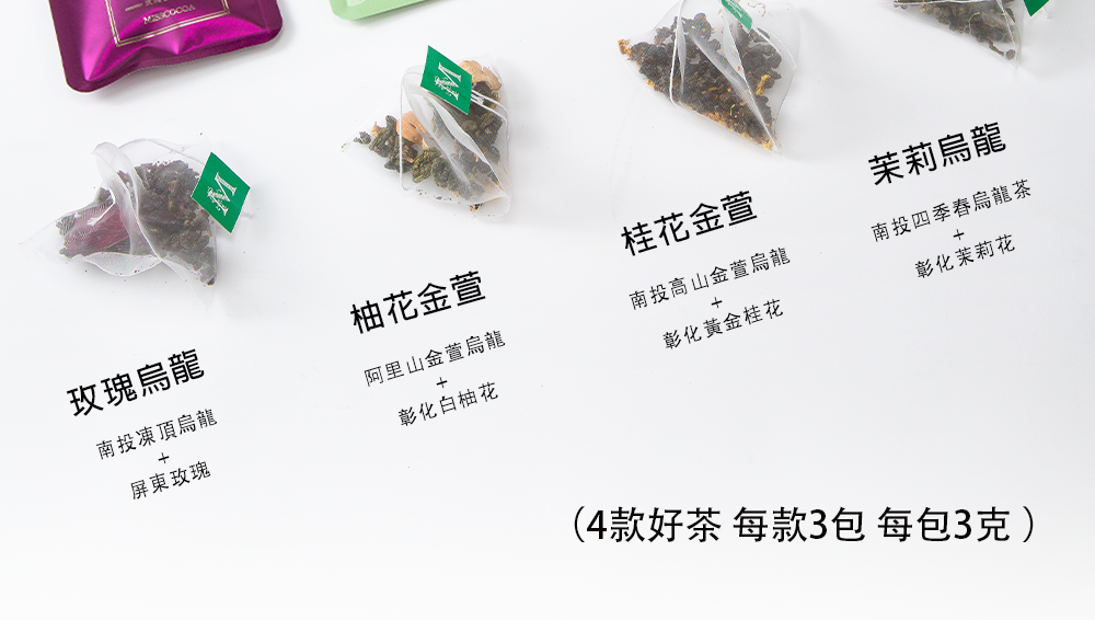 ✦窨製烏龍茶禮盒(內含:玫瑰烏龍×3包+柚花金萱×3包+桂花金萱×3包+茉莉烏龍×3包)